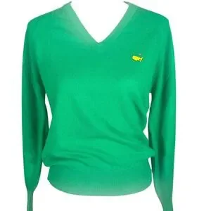 Vintage Augusta National Golf Shop Sweater Women M Green Masters V-Neck USA RARE