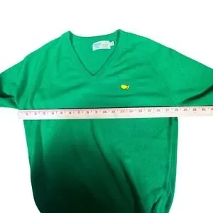 Embrace the classic heritage of the fairways with this vibrant green V-neck sweater from the Augusta National Golf Shop. This is MADE IN USA (RARE!) as noted on the tag—this dates the sweater to late 80's/early 90's. This lightweight knit piece features the iconic Masters tournament logo embroidered on the chest, offering a timeless aesthetic that transitions perfectly from the clubhouse to casual weekend outings. Crafted in the USA with a comfortable raglan sleeve design and ribbed trim, it provides a flattering silhouette that celebrates golf's most prestigious tradition.