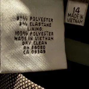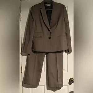 The Kasper 2 Piece Tan & Black Print Pant Suit in size 14 is a classic and versatile business outfit for women. Made from blended fabric, this vintage-inspired suit features a three-button jacket with a notch lapel and long sleeves, paired with matching pants in a solid tan and black print. The suit is lined with 100% polyester and has a regular length, making it suitable for various occasions including workwear, travel, and business meetings. With a classic fit and timeless style, this pant suit from Kasper is a must-have for any woman's wardrobe.