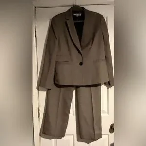Kasper 2 Piece Tan & Black Print Pant Suit Women Size 14 Business Classic