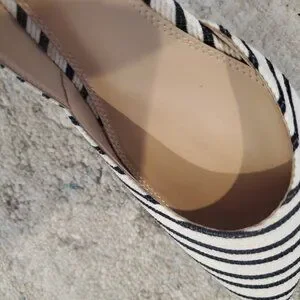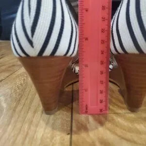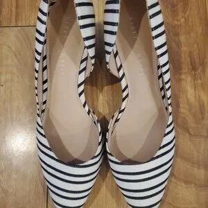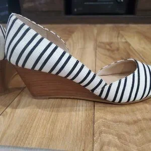 Kelly & Katie Womens Fassi Shoe Pointed Toe Ivory Black Stripes Wedge Heels