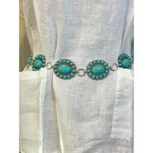 Western Turquoise Boho Concho Chain Belt Hippie Festival Cowgirl Rodeo Fall
