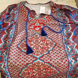 Urban Coco Bohemian Split V- Neck Tassle Tie Side Slit Swimsuit Cover-up Size XL