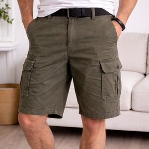 Comfortable and practical Dockers cargo shorts in a versatile olive green. Made from 100% cotton for a breathable, lightweight feel—perfect for warm weather or everyday wear.