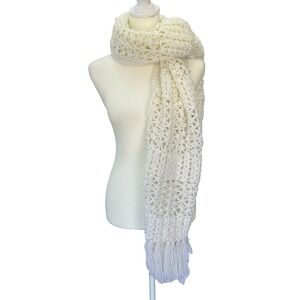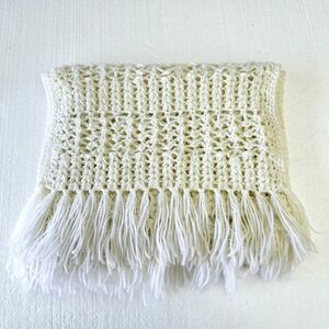 Crocheted White Shawl/Scarf Fall Boho Hippy Granny Retro Cottage Core Ethereal