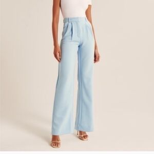 Chic wide leg pants in light blue. High-waisted design. Perfect for versatile styling. Slight mark shown on the last photo.
