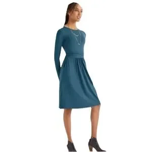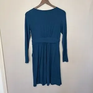 Boden Abigail Jersey Dress Size 6 Petite Teal Blue Long Sleeve Stretch