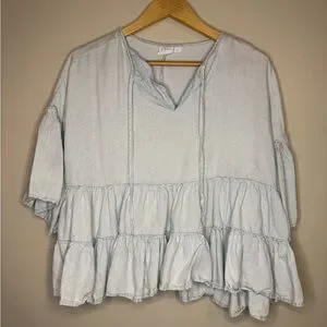 Anthropologie ap Light Wash Tiered Peplum Blouse Small