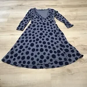 Boden Women 6P Dress Faux Wrap Fit Flare Polka Dots Jersey Purple