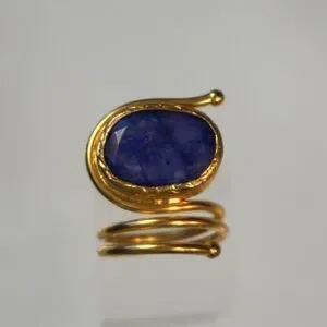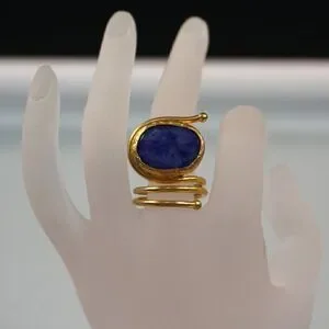Open Loop Wrap With Blue Large Lapis Like Stone Inlaid . Size 7.5.