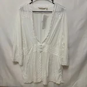 NWT Soft Surroundings Icon Melissani Tunic White Cottagecore Eyelet Size Large