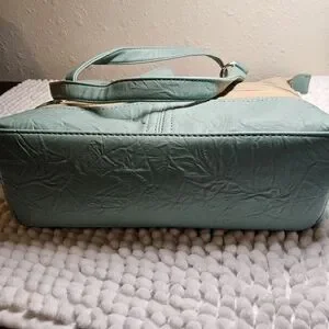 light khaki and teal colored