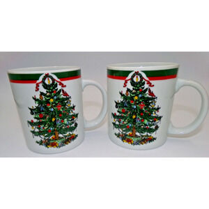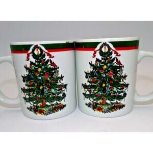 Vintage Topco Ribbons & Tree Christmas Tree Set 2 Coffee Mug Cocoa Mug Treat Mug