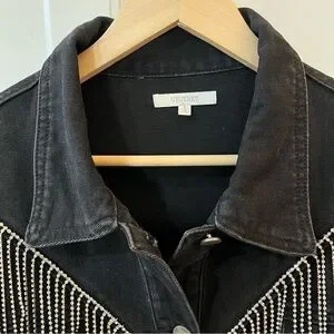 Cowgirl Rhinestone Fringe Black Denim Jacket, VEVERET sz 18. Trucker Glam Biker