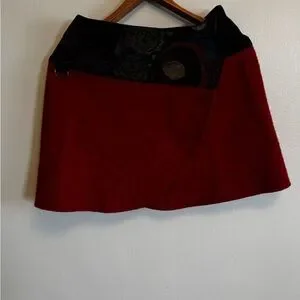 Chic mini skirt by Kali. Bold red with black accents. Perfect for a trendy look. The trailer pocket is lost.