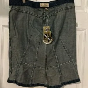 Vintage Juicy Couture denim skirt with pleats at the back, size large. This skirt is brand new and has never been worn, complete with tags. Flat measurements are 17” at the waist and nearly 20” in length from the top. Perfect for adding a stylish, classic touch to your wardrobe.