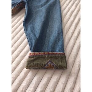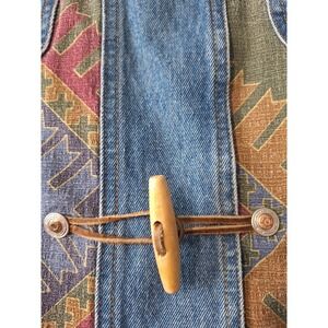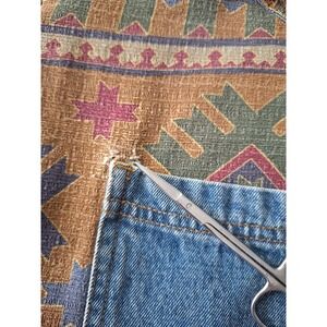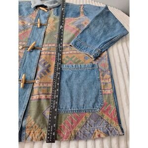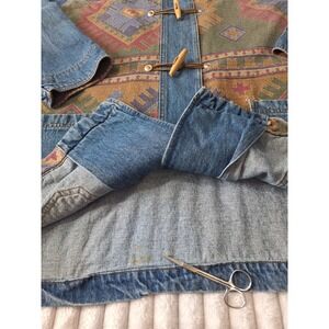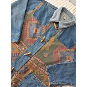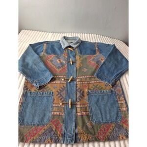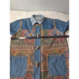 Vtg Denim Corduroy Collar Chore Barn Field Jacket Womens 26/28 Blue Aztec Tribal