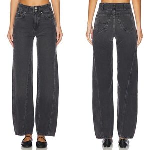 We the free Aster Straight Leg Jeans Barrel Leg in Asteroid Washed Black Size 30