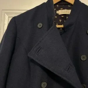 Elevate your style with this chic navy double-breasted pea coat. A perfect addition to your wardrobe for a sophisticated look. Size 14 (I think this is a UK 14, which is US 10)