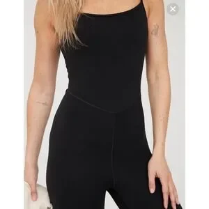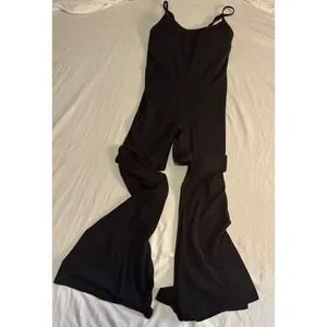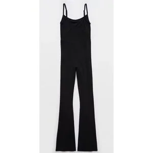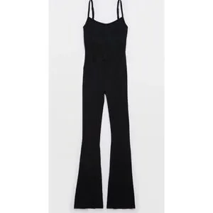 Keywords: Aerie jumpsuit, Offline by Aerie, Black jumpsuit, Sleeveless jumpsuit, Flared leg jumpsuit, Women's jumpsuit, Medium jumpsuit, Athleisure, Casual jumpsuit, Spaghetti strap jumpsuit, One piece, Relaxed, Loungewear