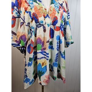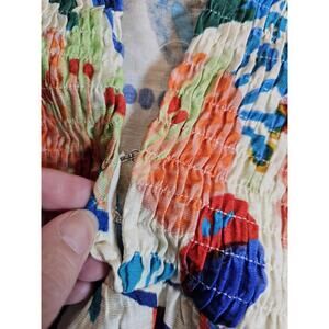 Entro Vibrant Floral Smocked Blouse Women's Size S Bohemian Colorful Party