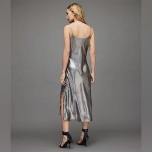 ALLSAINTS Hadley Metallic Slip Midi Dress