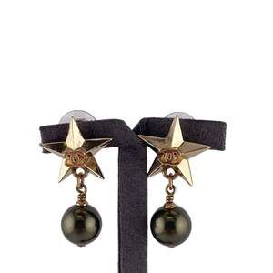 CHANEL Green Pearl Logo Earrings