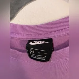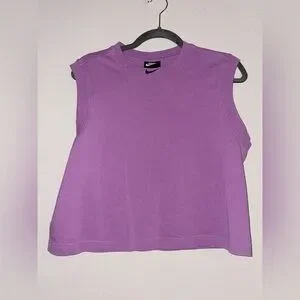 Stylish Nike muscle tee in soft lavender. Ideal for workouts or casual wear. Comfortable and chic design.