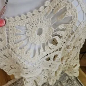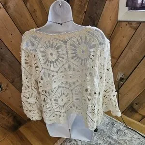 POL Clothing Crochet Lace Top Bell Sleeve Boho Chic Cream Lace Shirt Festival Fashion Open Knit Top Floral Crochet Beach Coverup Anthropologie Style Free People Style Romantic Lace Victorian Inspired Bohemian Top Summer Crochet, Easter, summer, spring, festival, concert, cruise, resort, baby shower, bridal shower