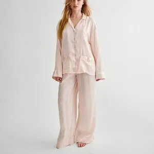This trousers and top pajama set pairs perfectly with your fave slippers for the perfect night in with your besties.