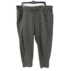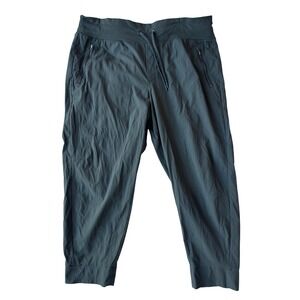 Athleta green Harbor Cargo Capri Pants Drawstring Waist Zip Pockets Size 20