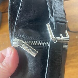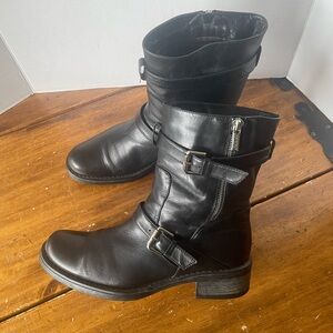 Aquatalia Women's Black Leather Buckles Combat Biker Moto Boots Italy Size 10