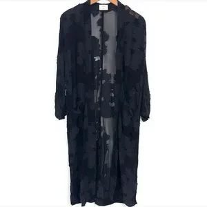 Aritzia Wilfred Black Durante Robe Sheer Floral duster