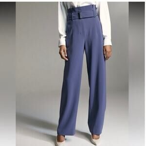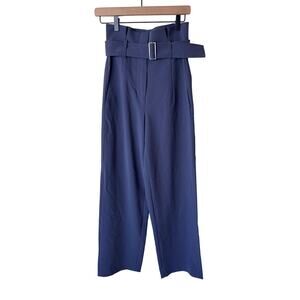 BABATON Power Pant High Waisted Belted Paper Bag Dress Pant Dive Blue Size 2
