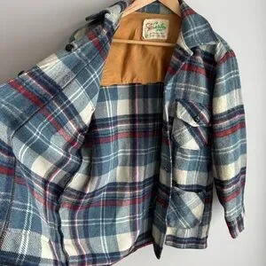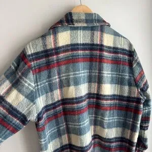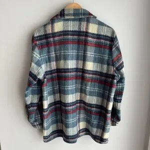 Vintage 60s 70s Caribou Coat Plaid Wool Jacket Shacket Button Up Mens M Womens L