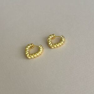 Elegant gold twisted hoop earrings perfect for any occasion. Add a touch of sophistication to your look.