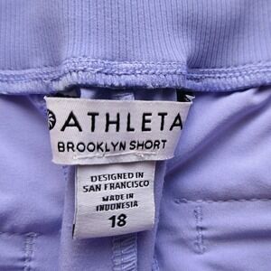 Athleta women's Size 18 Brooklyn Shorts. Pastel Purple with Pockets. Original owner. Worn a few times. I do not see any flaws. See photos for measurements.
