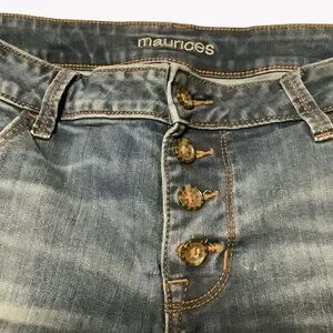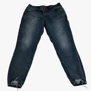 Maurices Womens Distressed Button-Fly Jeans L Reg Dark Wash Casual