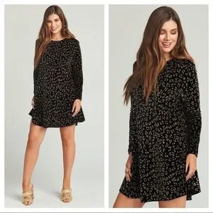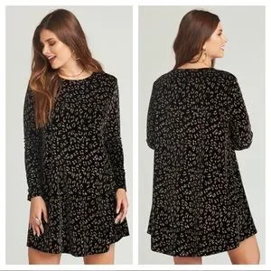Flirty fancy chic Show Me Your MuMu Glitter Cheetah Toby Swing Dress Black Gold S NWT - fall winter little black dress stretchy comfy fun boho animal print casual work office wedding shower homecoming dance date night girls night party pair with booties or heels holiday thanksgiving christmas new years halloween black cat