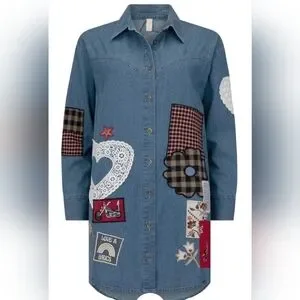 Chic Spell Bombshell Patchwork Chambray Shirt or Mini Dress NWT Size Large