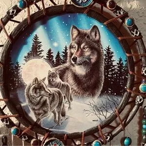 Wolf Dreamcatcher with Blue & Red intermittent lights