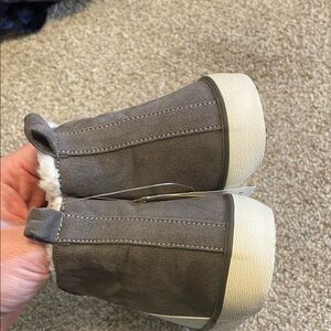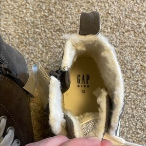 Chic GAP Kids high-top sneakers with a charcoal and cream design. Features side zipper for easy wear and laces. Ideal for active kids. New with tags and from pet and smoke free home! Size 12T!