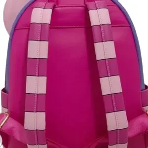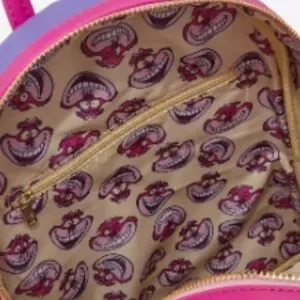 Travel to Wonderland with this Alice in Wonderland mini backpack! Featuring debossed designs of the Cheshire Cat on the body, the front includes a large fuzzy applique of the cat. With striped side pockets and adjustable straps, this bag is perfect for the Disney Parks.