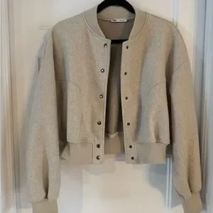 Zara Neutral Cream Bomber Jacket
