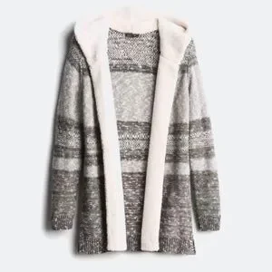 Dockerie Sherpa hooded sweater coat, 48% cotton, 44% acrylic, 8% polyester. Open front, size small. Excellent condition.