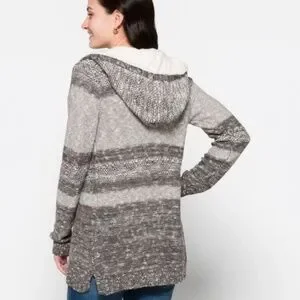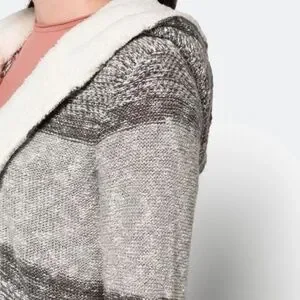 Lety and Me Hooded Cardigan Sweater Coat Gray And White Size S