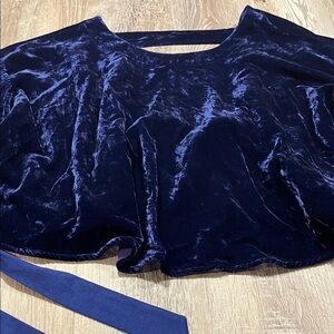 Free People Elegant Velvet Navy Blue Blouse with Bow Detail New Size small