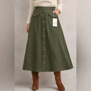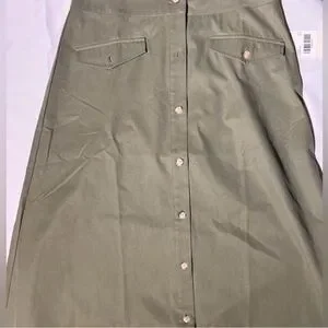 NWT Tuckernuck Olive Green Button Front A-Line Midi/Maxi Skirt Size 6 Pockets