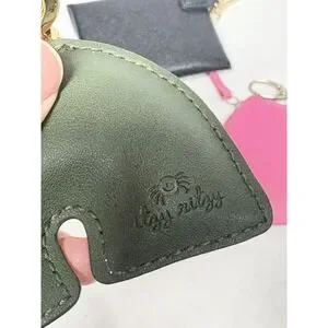 • Itzy Ritzy Rainbow Keychain – Faux leather, multi-color rainbow front with logo embossed on back. Goldtone hardware.