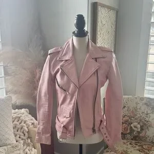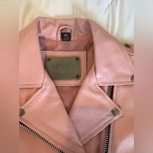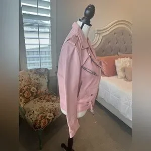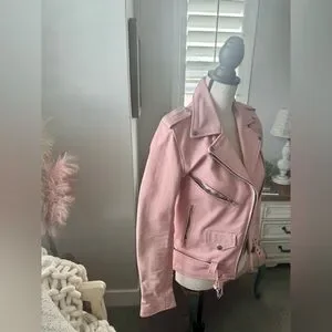 Understated Leather Pink Zipper Belted Collared Biker Jacket Women’s XS